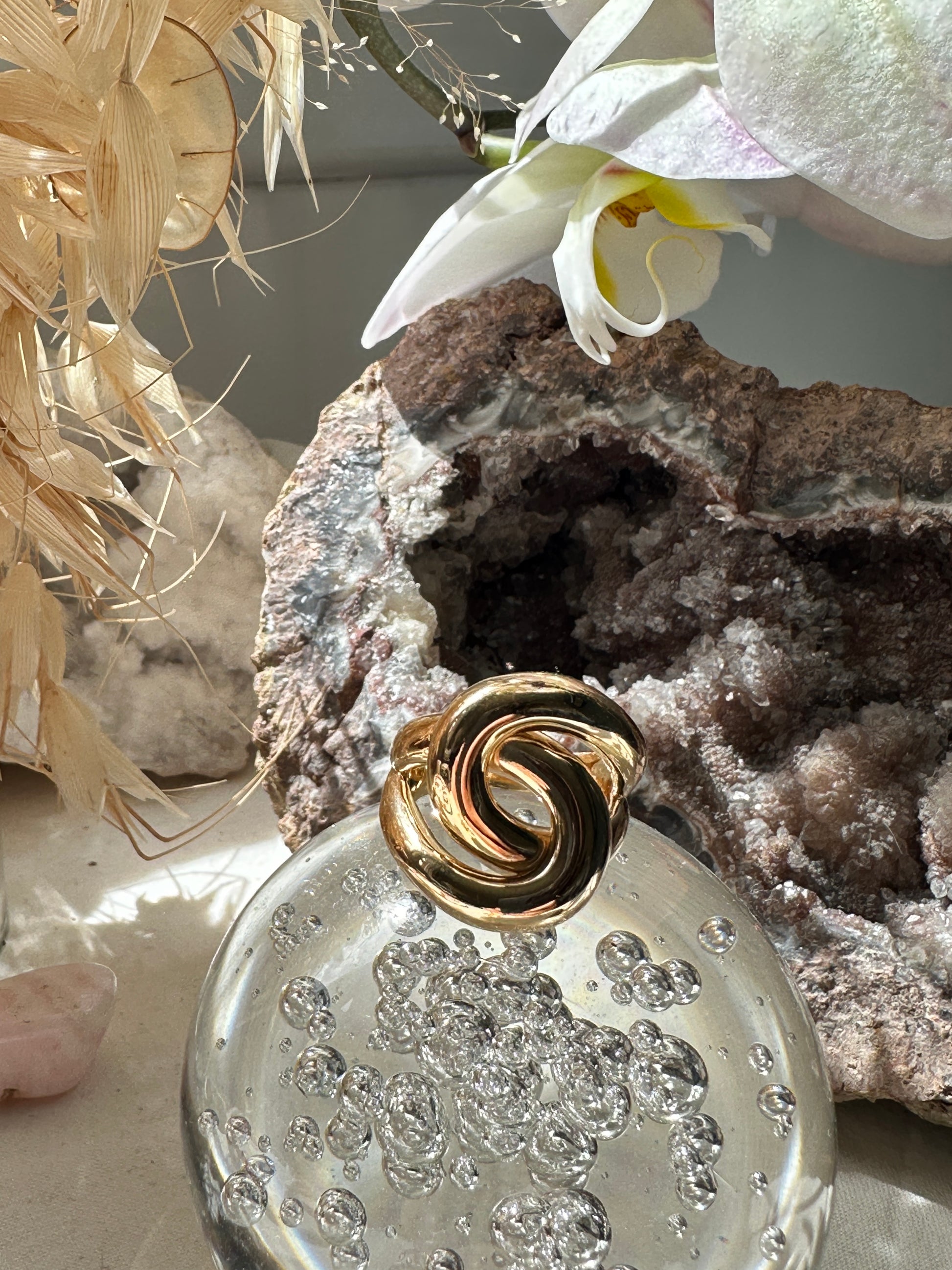 Bague en laiton plaqué or 18 carats 750/000 - 3 microns. Plaquage qualitatif et résistant.Hauteur 21mm.