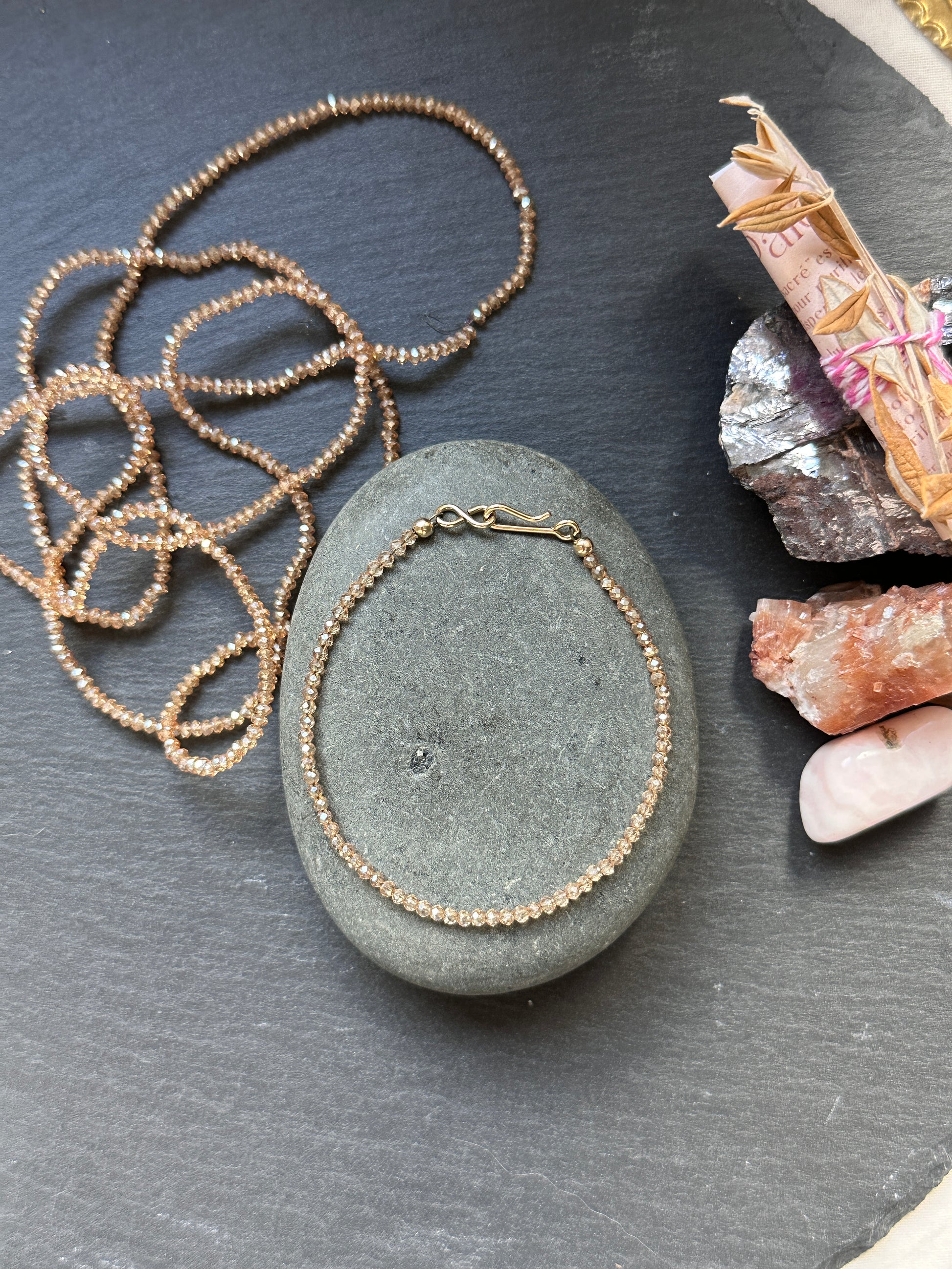 Simplicité, minimalisme et brillance sont la promesse de ses minis perles en quartz champagnes aux reflets étincelants ✨ Elles brillent de mille feux et rendent ce bracelet intemporel, délicat et solaire. Parfait pour illuminer le quotidien. Il s'assortit au collier Infinite en Quartz Champagne disponible ici
