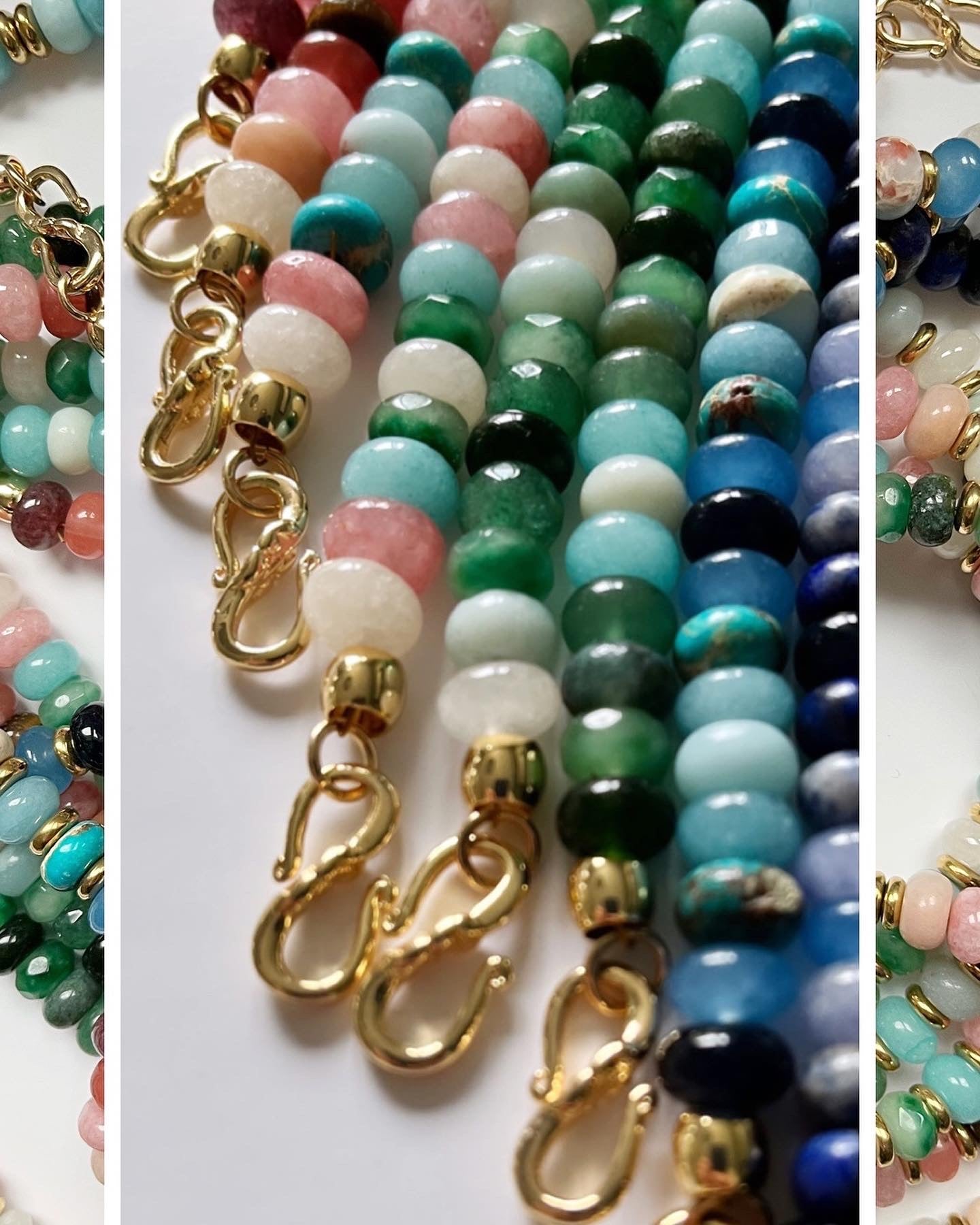 -Les MAHANIS verts combinent tour à tour jade, tourmaline verte, agate mousse, amazonite ou aventurine.
