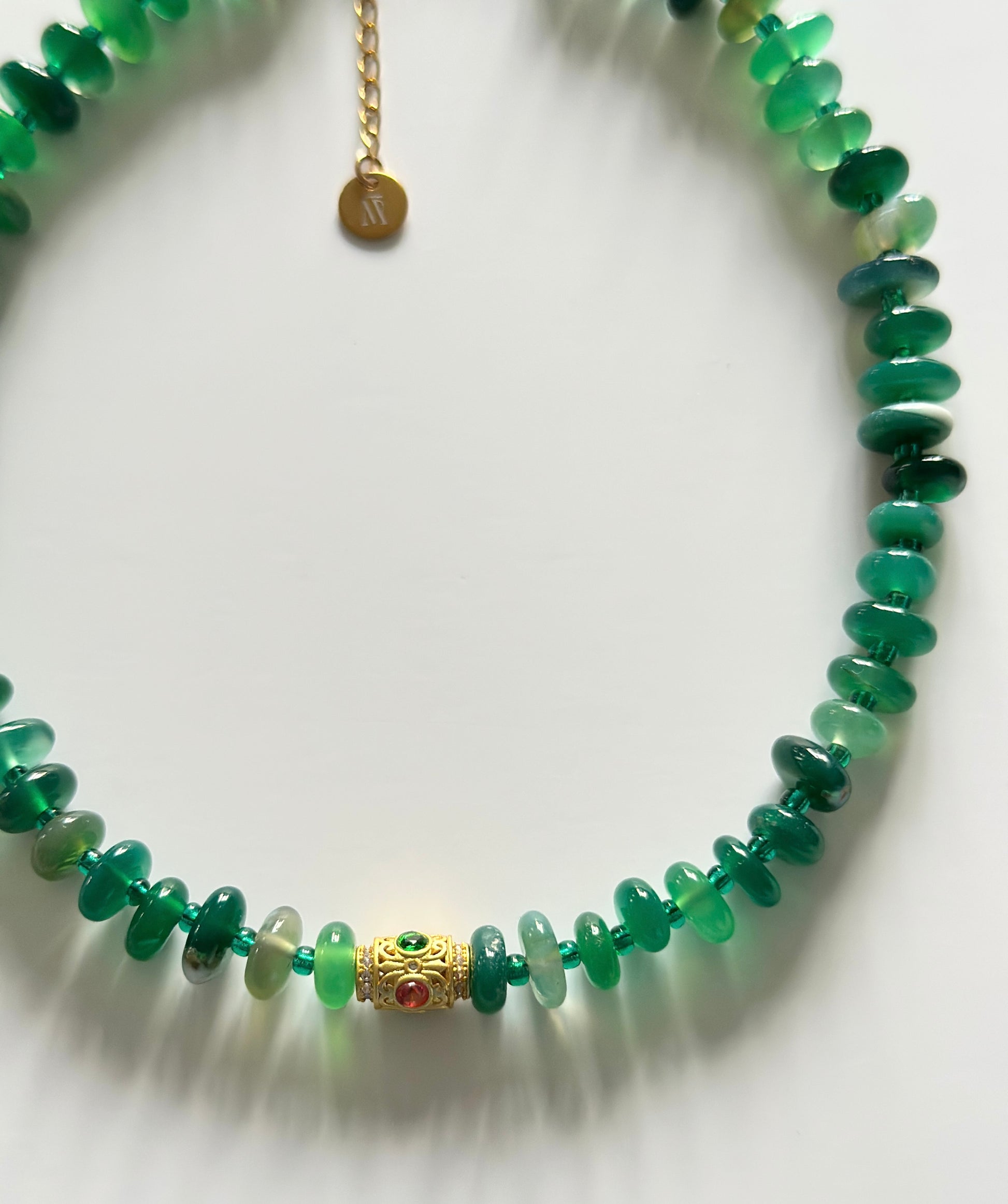 Le motif central doré (avec insert zircons vert et rose corail ) présent sur le collier Onyx est optionnel. Le collier peut être commandé sans le motif si vous ne voulez que des pierres.