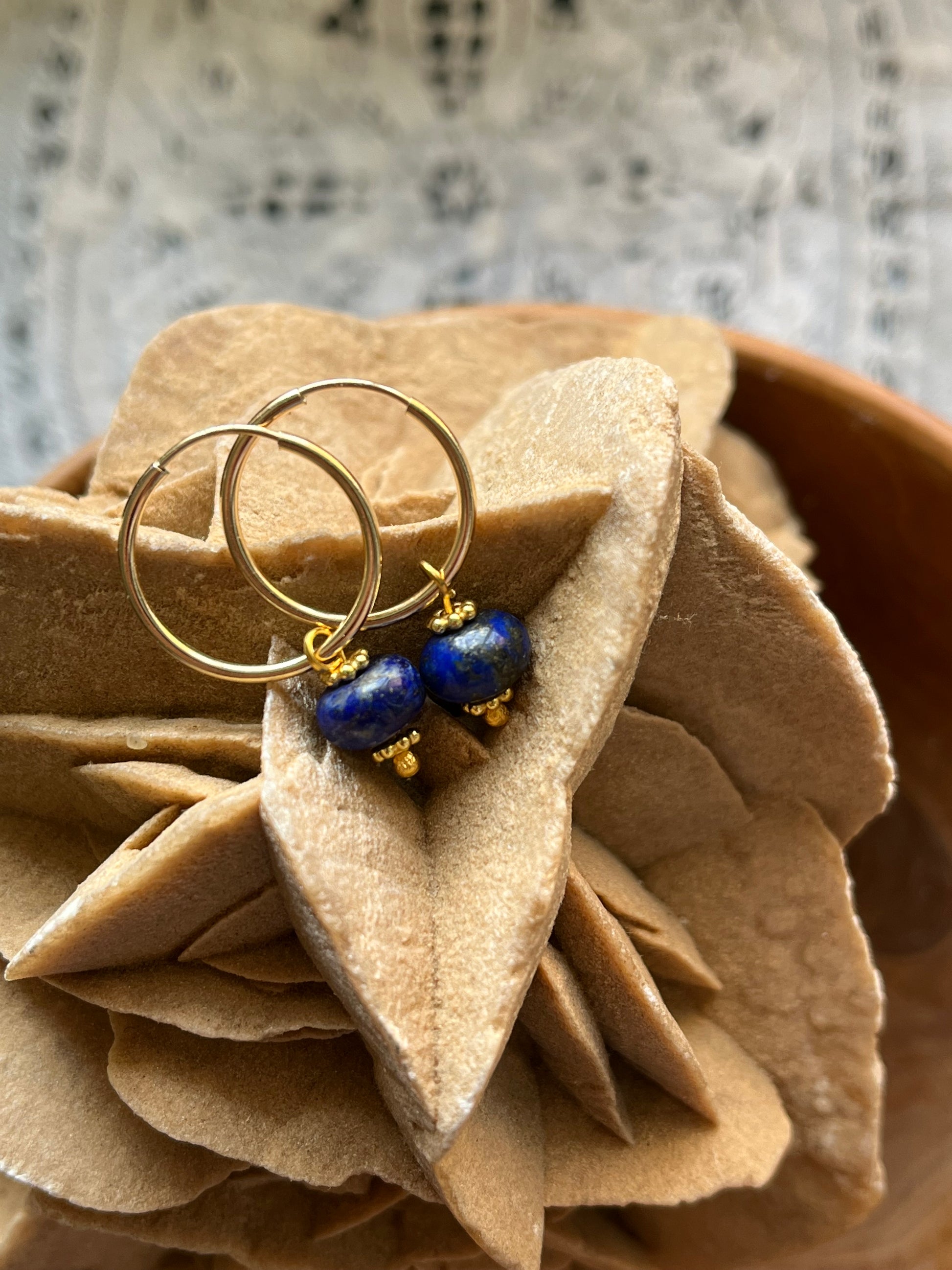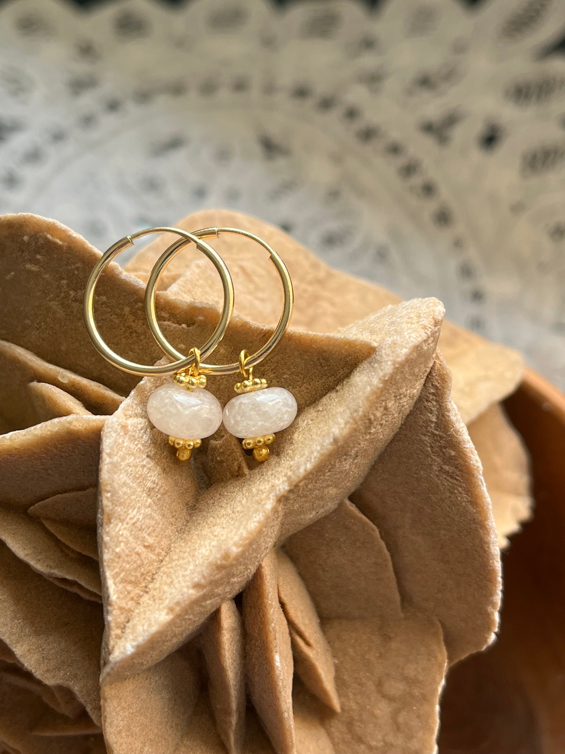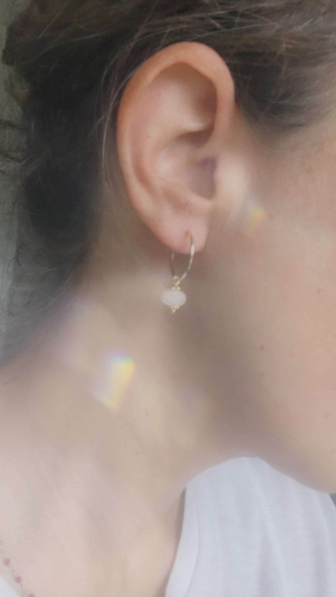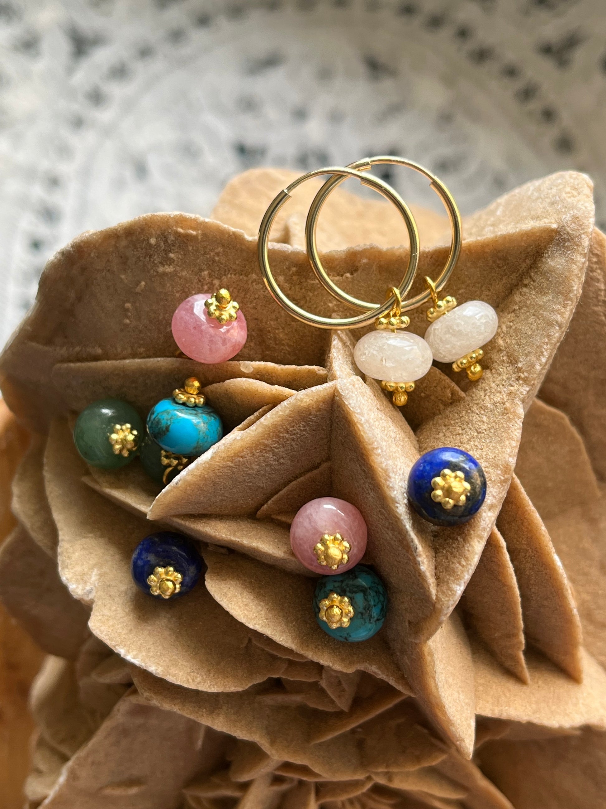 Diamètre des créoles plaquées or : 17mm. Perles naturelles déclinées en 5 pierres.